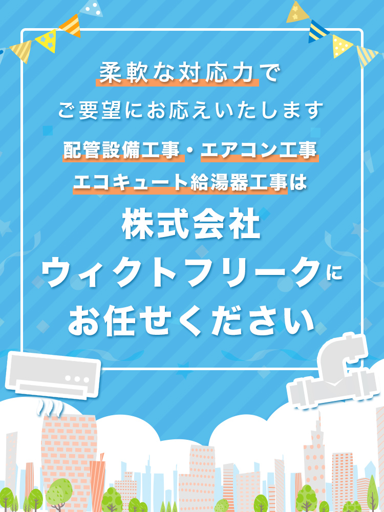 埼玉県を中心に配管設備工事やエアコン工事を行っています、株式会社ウィクトフリークです。